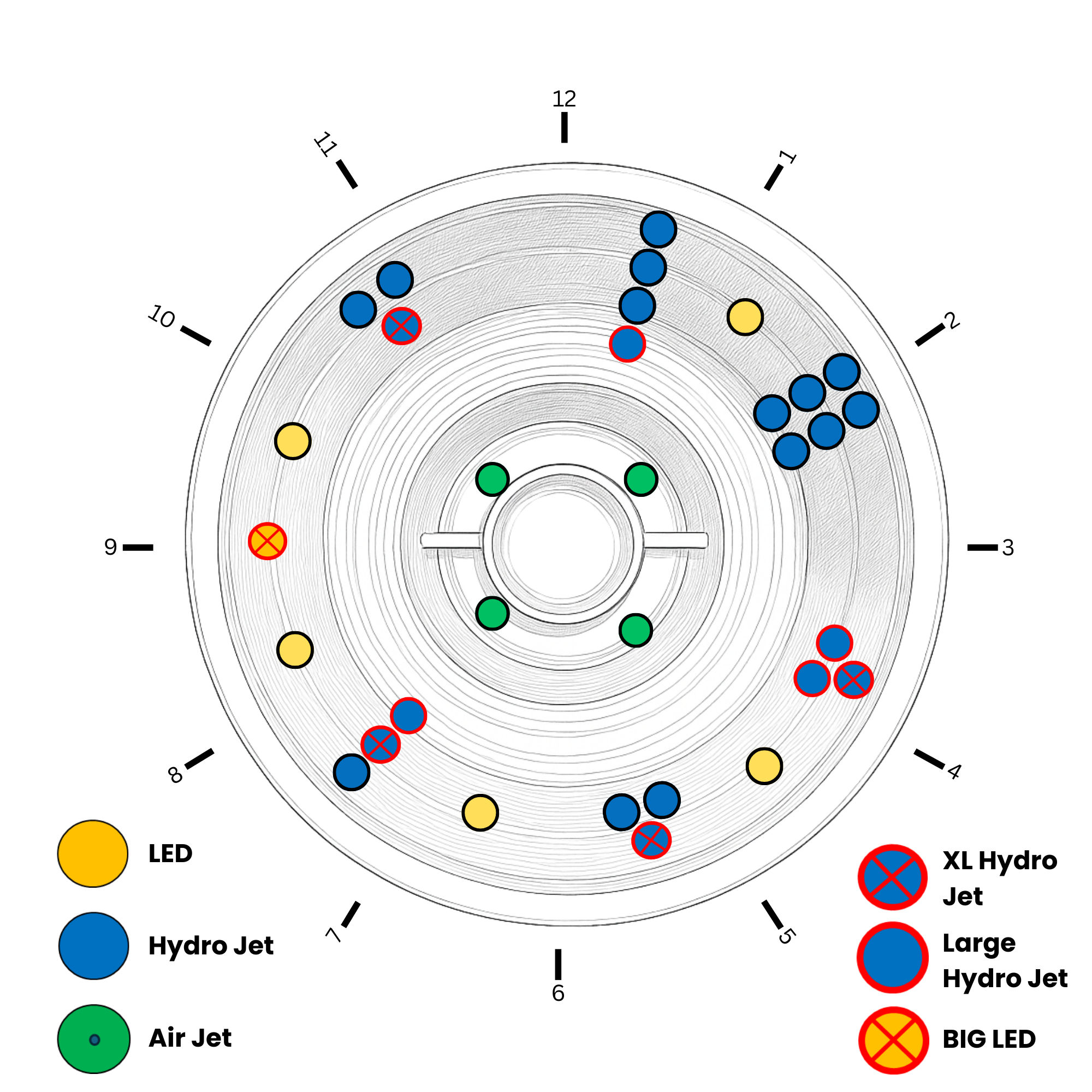 Even bigger, even better. Galinda L brings room for ten, turning every soak into a gathering worth remembering.
